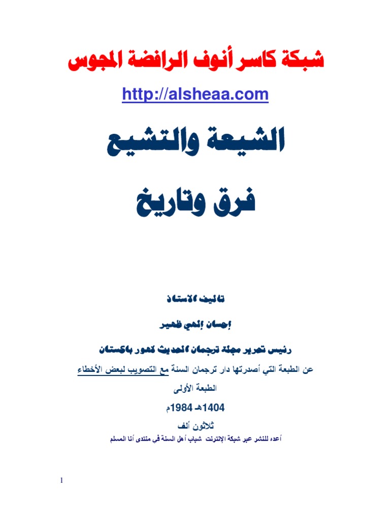 تأليف / إحسان إلهي ظهير. غفر الله له ورحمنا وإياه، أخونا الشيخ حافظ إحسان معروف عند خواص أهل العلم، فله مؤلفات كثيرة في الرد على الشيعة، والرد على. إحسان إلهي ظهير — المهدي عند الشيعة 26:23. Publishing platform for digital magazines, interactive publications and online catalogs. إحسان إلهي ظهير الشيعة والفرق الضالة 1.